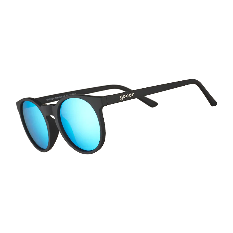 Hipster-inspired round blue lens sunglasses worth rambling about. Fashionable black retro round frames meet functional polarised lenses with/ UV400 protection. Go ahead and get sweaty– the special grip coating and snug, lightweight fit means they won’t slip or bounce.