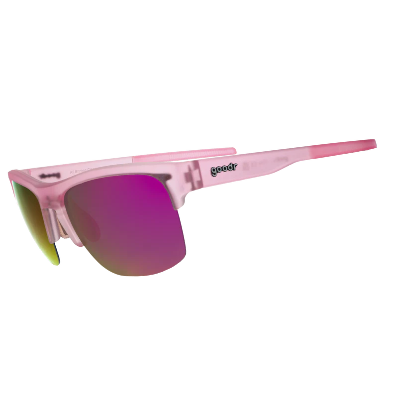 These translucent pink sunglasses feature a half-rim frame, a fully adjustable nose piece, and pink reflective polarised lenses that will keep your face lookin’ fresh!!! Mud masks and exfoliation? Nah, we'll stick to The All Shrimp Cleanse.
