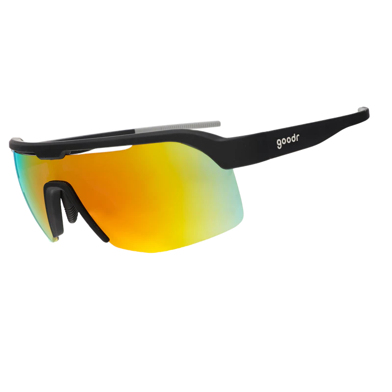 These black shield sunglasses with half-rim frames and burnt orange reflective lenses won't slip or bounce when you spike the ball and promptly follow that up with a legendary victory dance in the endzone that can only be described as a twerkout.