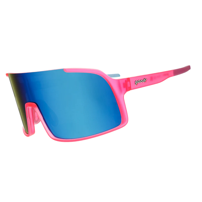 ALL occasions are worthy of a confetti cannon. Runner's toe finally healed? Bring on the cannon! Struck out at the big game? Cannon. These hot pink semi-rimless shield sunglasses w/ teal reflective lenses know how to bring the confetti cannon vibes.